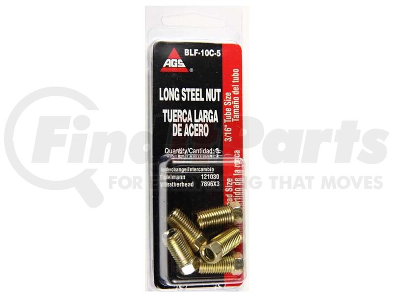 AGS Company BLF-10C-5 - Steel Tube Nut, Long, 3/16 (3/8-24 Inverted), 5/card