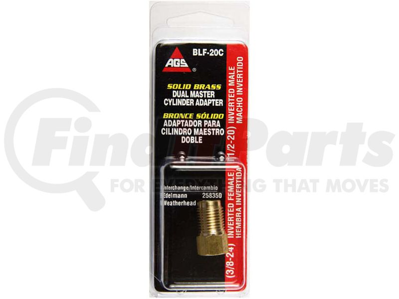 AGS Company BLF-20C - Brass Adapter, Female(3/8-24 Inverted), Male(1/2-20 Inverted), 1/card