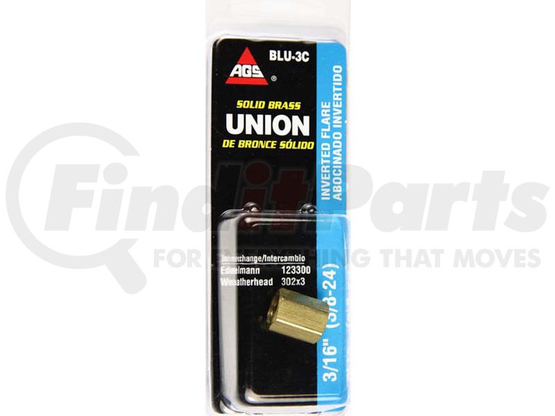 AGS Company BLU-3C - Brass Brake Line Union, 3/16 (3/8-24 Inverted), 1/card