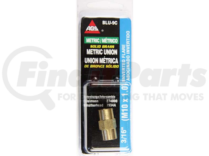 AGS Company BLU-9C - Brass Brake Line Union, 3/16 (M10x1.0 Inverted), 1/card