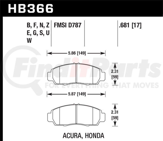 Hawk Friction HB366F681 - PADS HPSACURA/HON