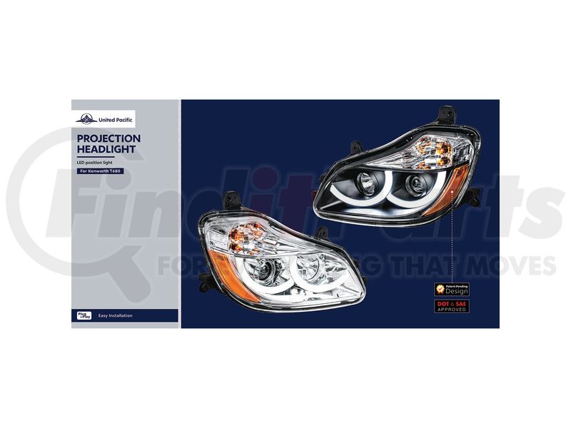 (888) 312-8812 Login SignupProjector Headlight - LH, Black, with White LED Position Light, 4.58A, 12V DC, for 2011-2021 Kenworth T680