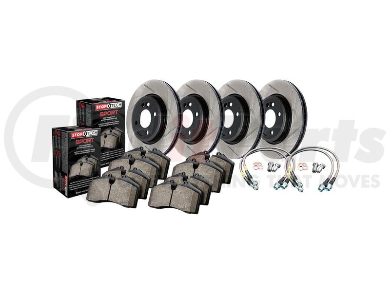StopTech Sport Axle Pack; Slotted Rotor; 4 Wheel Brake Kit with Brake lines
