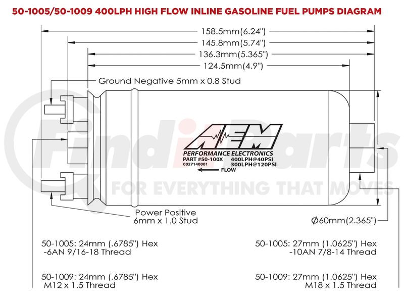 (888) 312-8812 Login SignupAEM 400LPH (Metric) Inline High Flow Fuel Pump