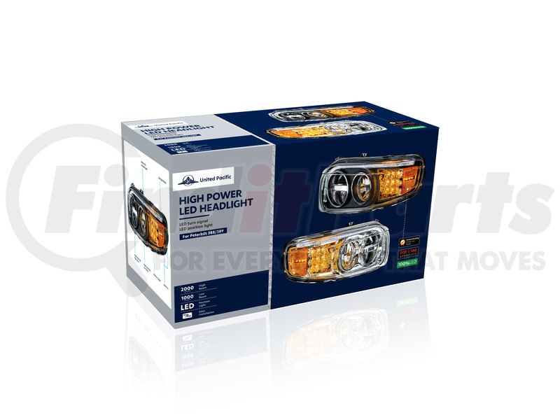 United Pacific 35795 - LED Chrome Headlight with Turn/Position Light Bar for 2008-2023 Peterbilt 389 - Passenger Side