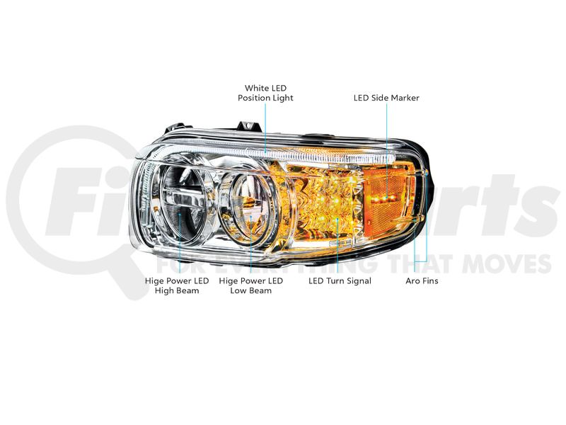 LED Chrome Headlight with Turn/Position Light Bar for 2008-2023 Peterbilt 389 - Passenger Side