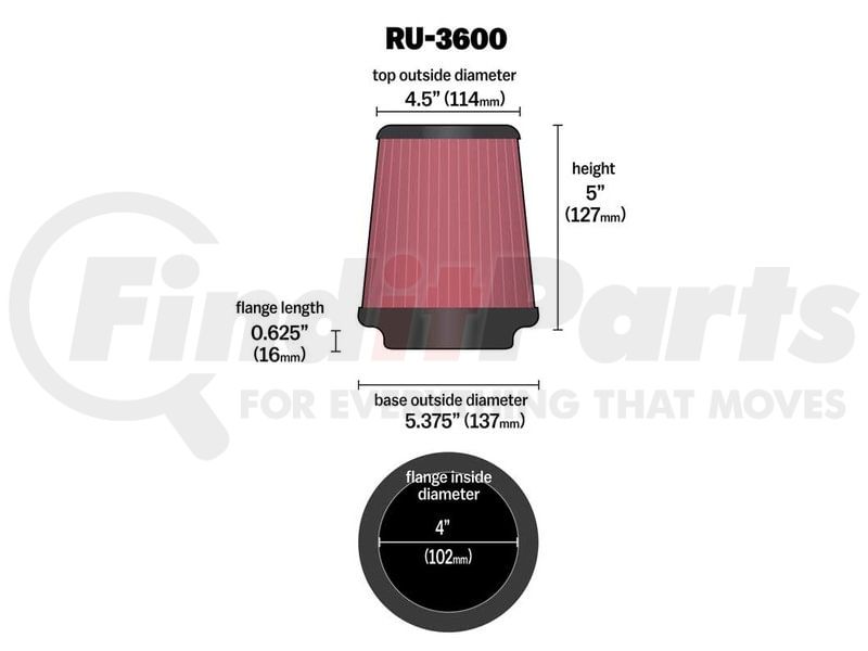 K&N Engineering Inc. RU-3600 - Universal Clamp-On Air Filter