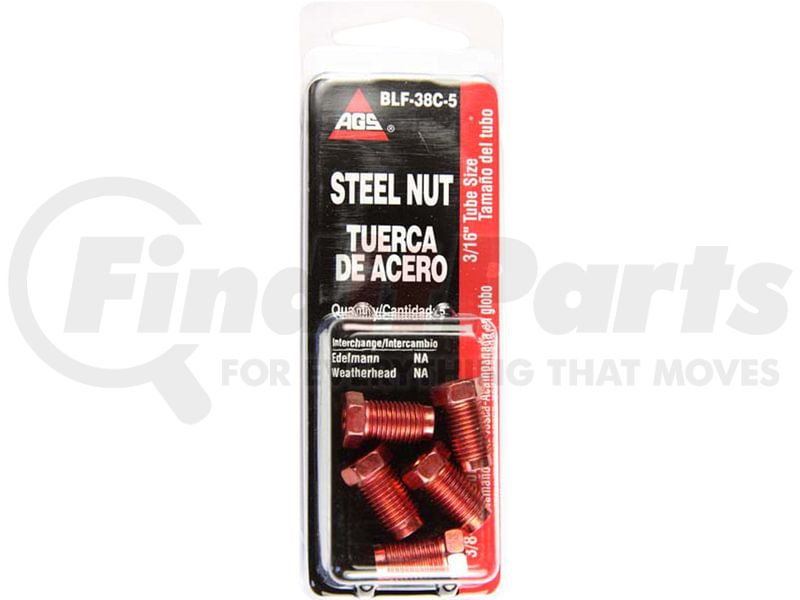 AGS Company BLF-38C-5 - Steel Tube Nut, 3/16 (3/8-24 Bubble), 5/card