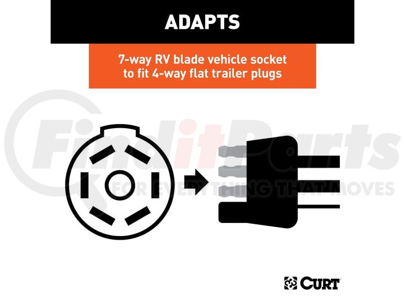 Adapts 7-way RV blade vehicle socket to fit 4-way flat trailer plugs