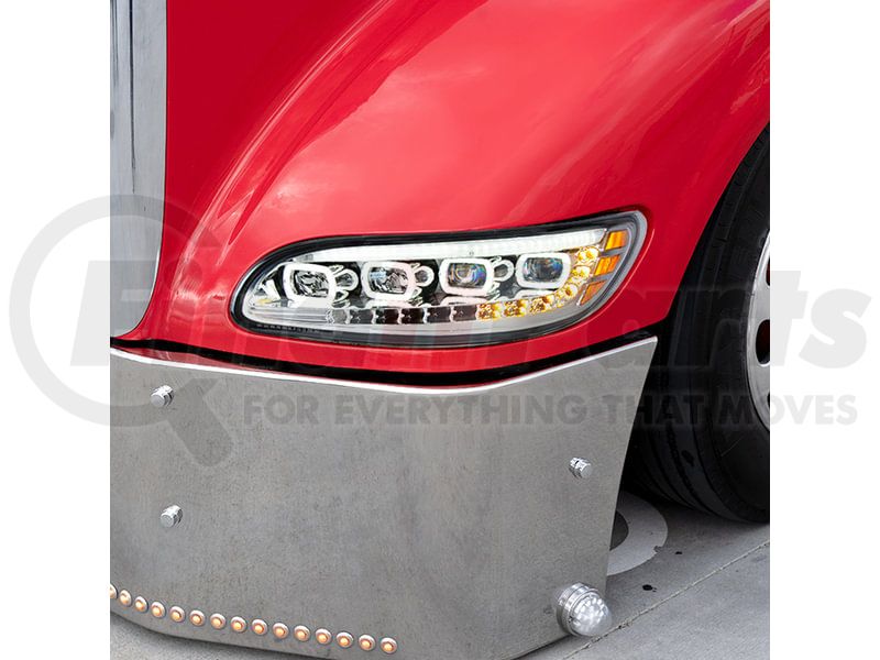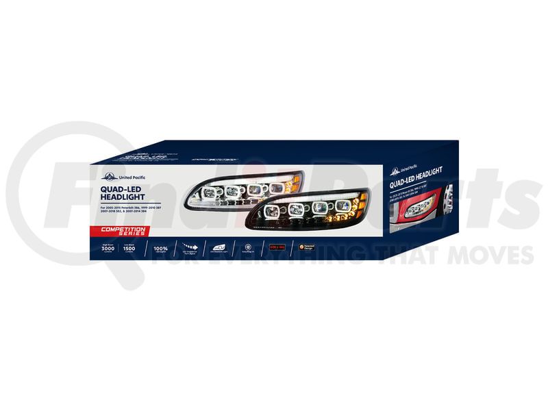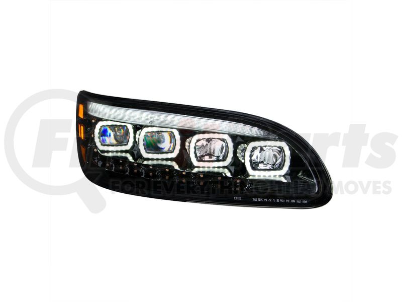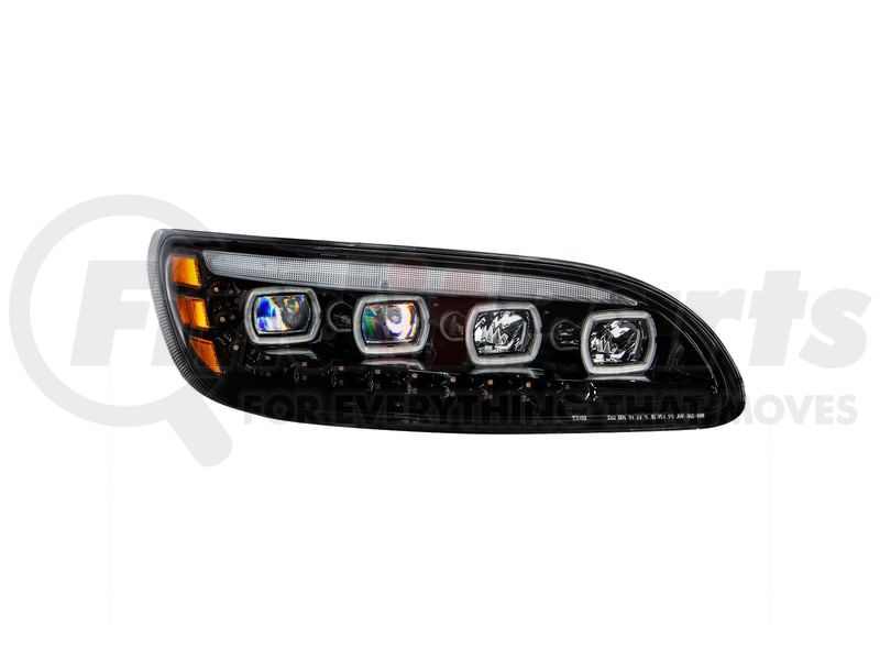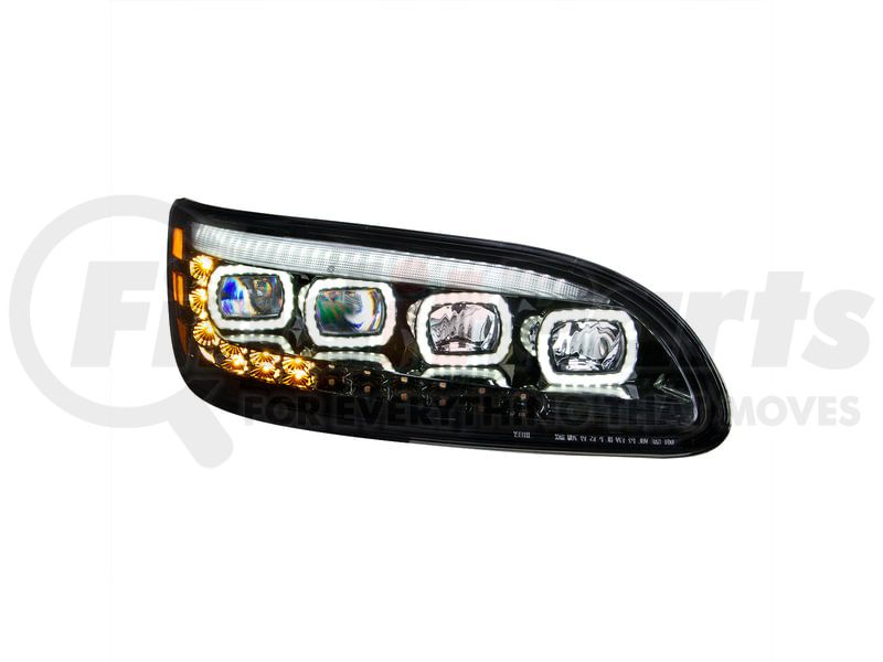 United Pacific 35844 - Quad-LED Black Headlight with LED Sequential Turn Signal and DRL for 2005-15 Peterbilt 386 - Passenger Side