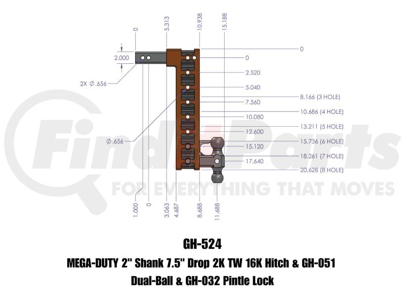 Gen-Y Hitch GH524 - MEGA-DUTY 2' SHANK 7.5' DROP 2K TW
