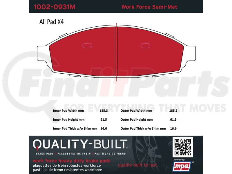 Brake Pad, Brake Pads, Semi-Metallic Pads, Semi-met, Work force Semi-met, Brake Pads with hardware