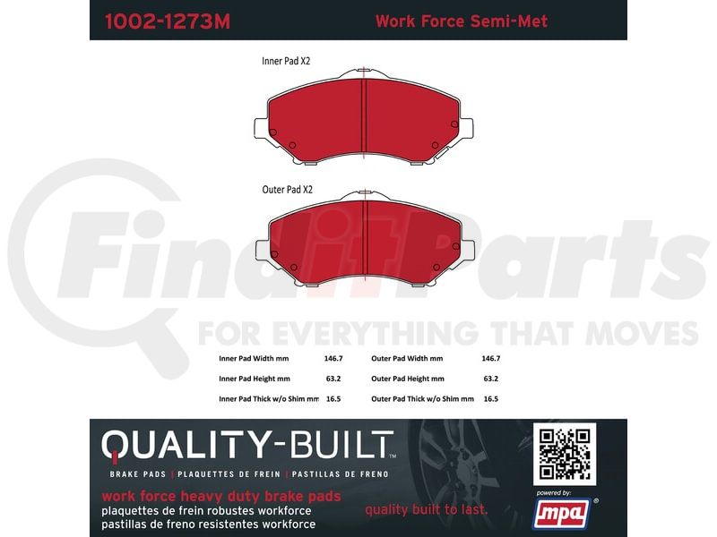 MPA Electrical 1002-1273M - Quality-Built Disc Brake Pad Set - Work Force, Heavy Duty, with Hardware