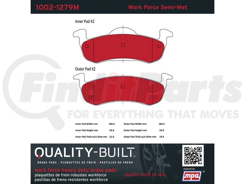 MPA Electrical 1002-1279M - Quality-Built Disc Brake Pad Set - Work Force, Heavy Duty, with Hardware