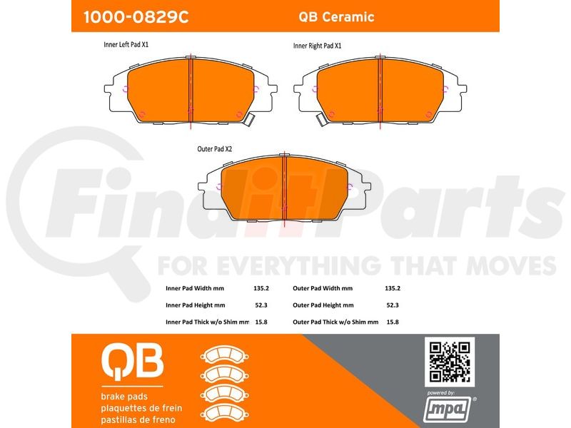 MPA Electrical 1000-0829C - Quality-Built Disc Brake Pad Set - Ceramic