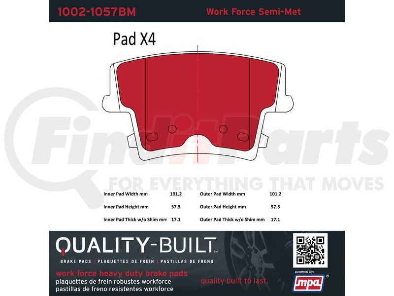 MPA Electrical 1002-1057BM - Quality-Built Disc Brake Pad Set - Work Force, Heavy Duty, with Hardware