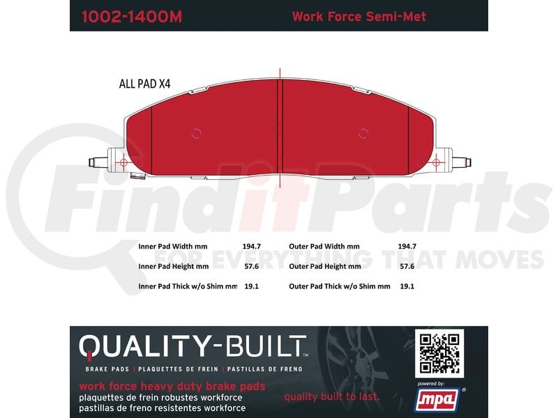 MPA Electrical 1002-1400M - Quality-Built Disc Brake Pad Set - Work Force, Heavy Duty, with Hardware