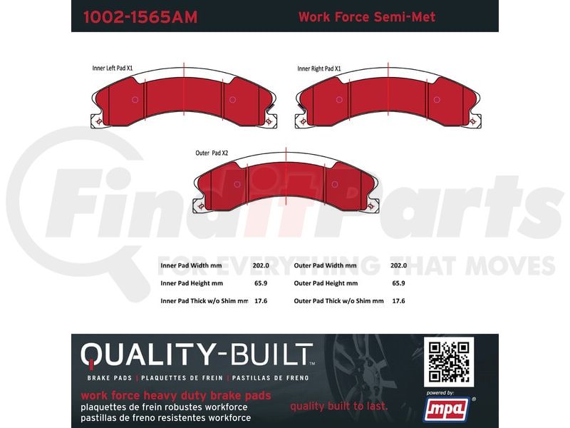 MPA Electrical 1002-1565AM - Quality-Built Disc Brake Pad Set - Work Force, Heavy Duty, with Hardware