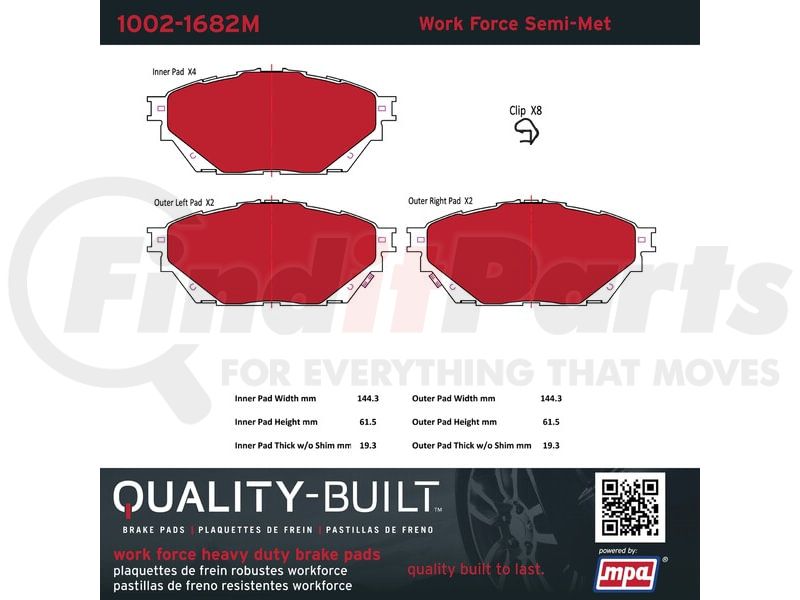 MPA Electrical 1002-1682M - Quality-Built Work Force Heavy Duty Brake Pads w/ Hardware