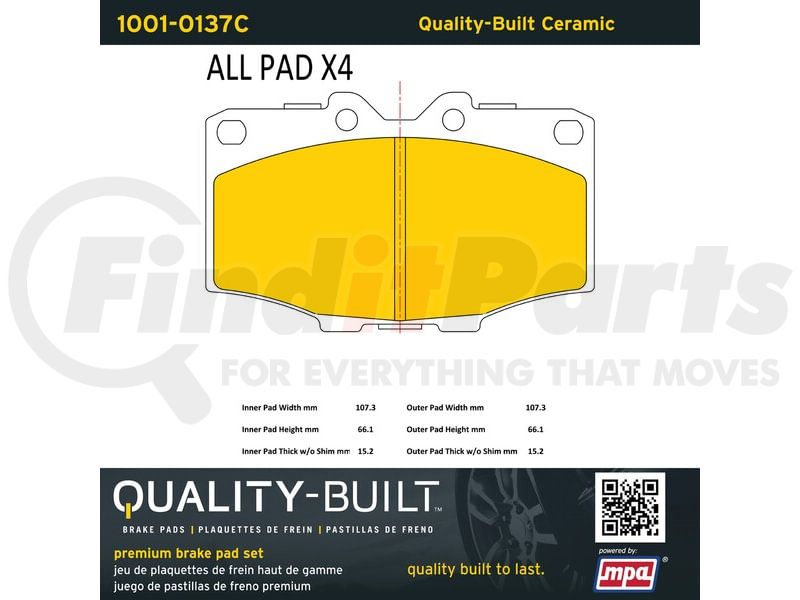 MPA Electrical 1001-0137C - Quality-Built Disc Brake Pad, Premium, Ceramic, with Hardware