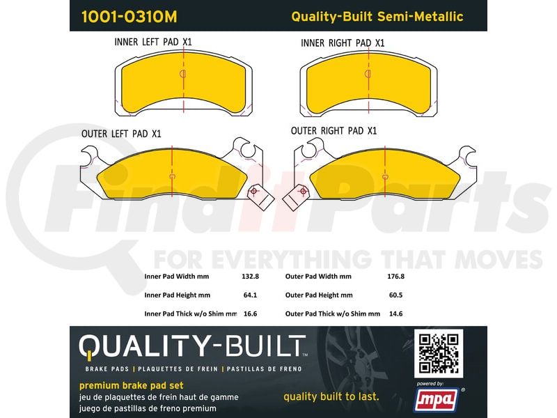 MPA Electrical 1001-0310M - Quality-Built Premium Semi-Metallic Brake Pads w/ Hardware