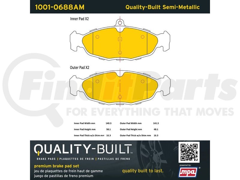 MPA Electrical 1001-0688AM - Quality-Built Premium Disc Brake Pad Set - Semi-Metallic, with Hardware