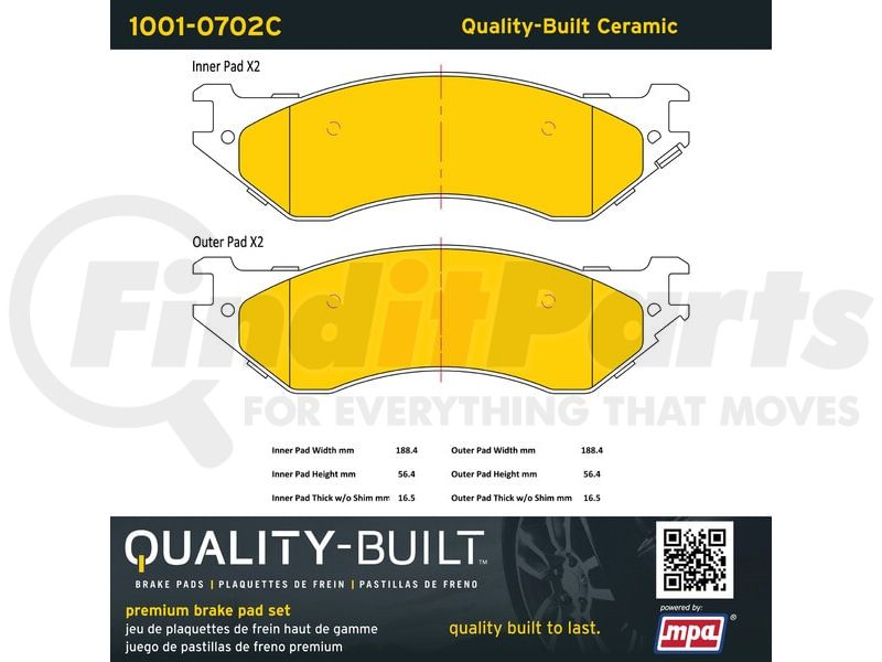 MPA Electrical 1001-0702C - Quality-Built Premium Ceramic Brake Pads w/ Hardware