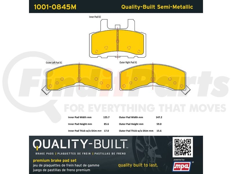 MPA Electrical 1001-0845M - Quality-Built Premium Disc Brake Pad Set - Semi-Metallic, with Hardware