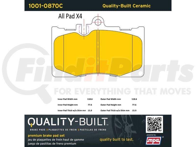 MPA Electrical 1001-0870C - Quality-Built Premium Ceramic Brake Pads w/ Hardware