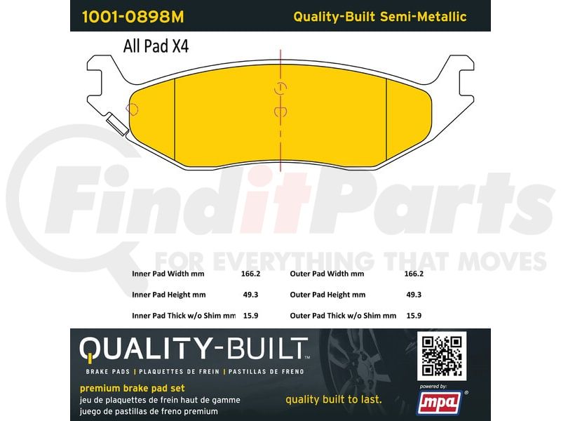 MPA Electrical 1001-0898M - Quality-Built Premium Disc Brake Pad Set - Semi-Metallic, with Hardware