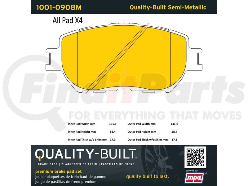 MPA Electrical 1001-0908M - Quality-Built Premium Semi-Metallic Brake Pads w/ Hardware