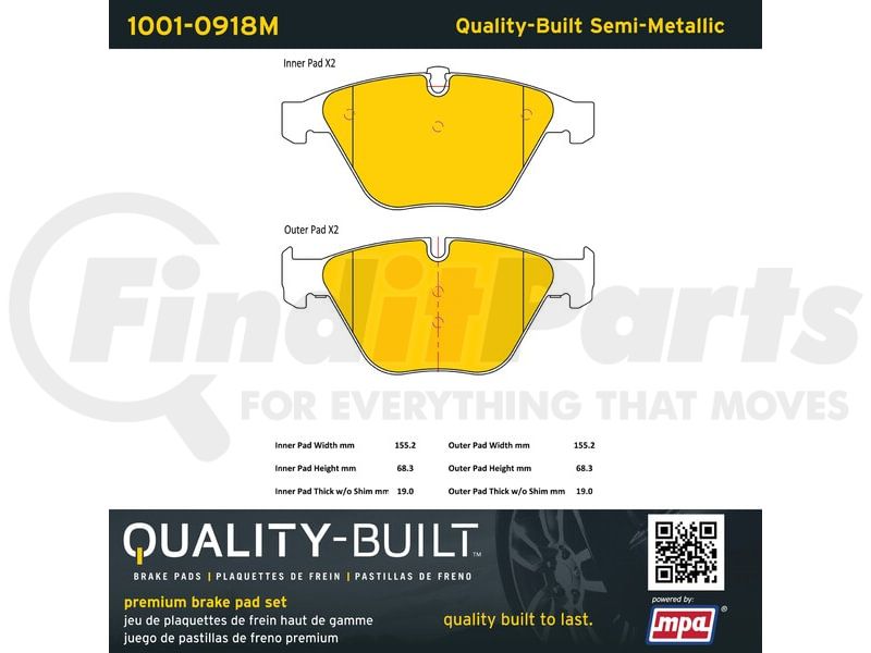 MPA Electrical 1001-0918M - Quality-Built Premium Disc Brake Pad Set - Semi-Metallic, with Hardware