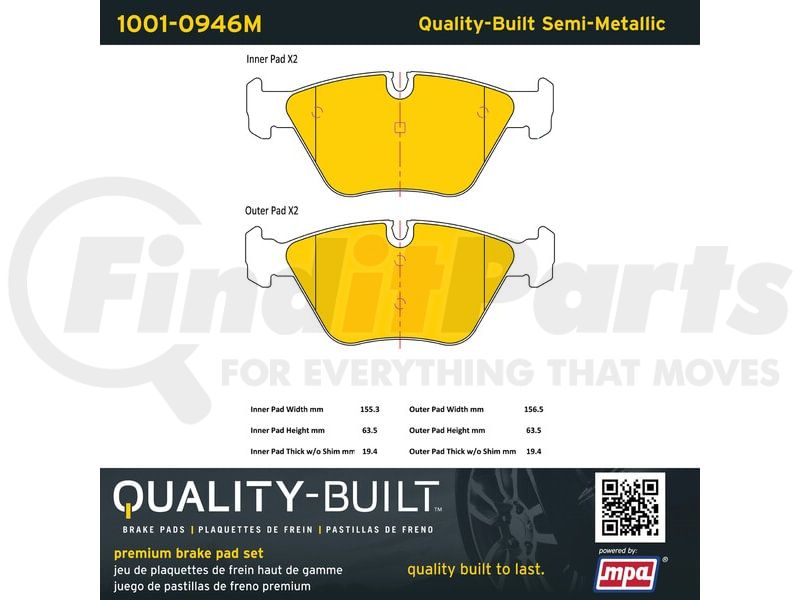 MPA Electrical 1001-0946M - Quality-Built Premium Disc Brake Pad Set - Semi-Metallic, with Hardware