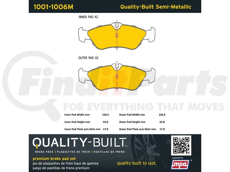 MPA Electrical 1001-1006M - Quality-Built Premium Disc Brake Pad Set - Semi-Metallic, with Hardware