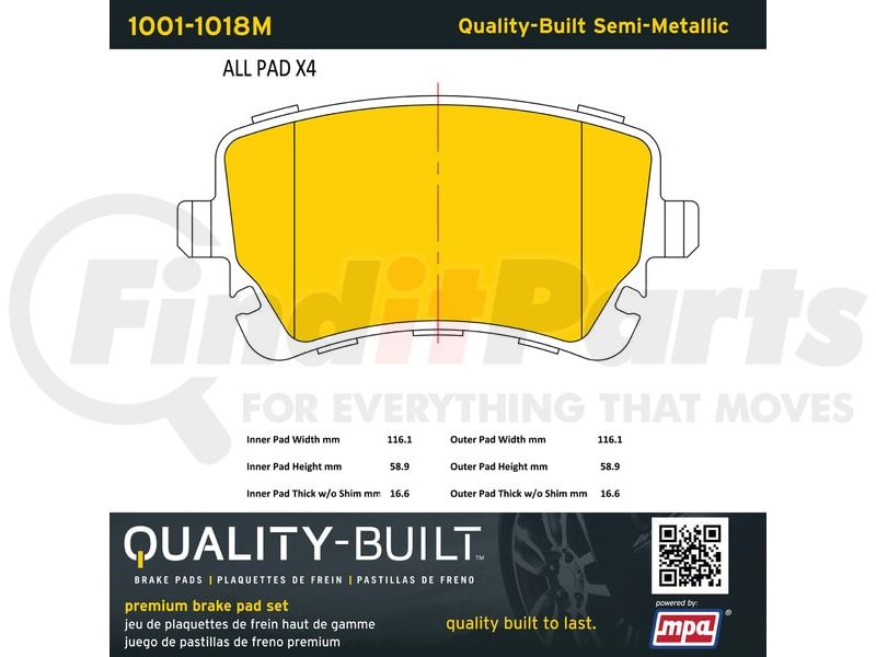 MPA Electrical 1001-1018M - Quality-Built Premium Semi-Metallic Brake Pads w/ Hardware