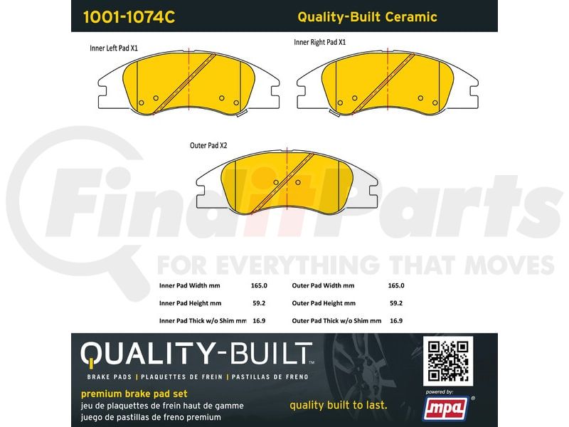 MPA Electrical 1001-1074C - Quality-Built Premium Ceramic Brake Pads w/ Hardware