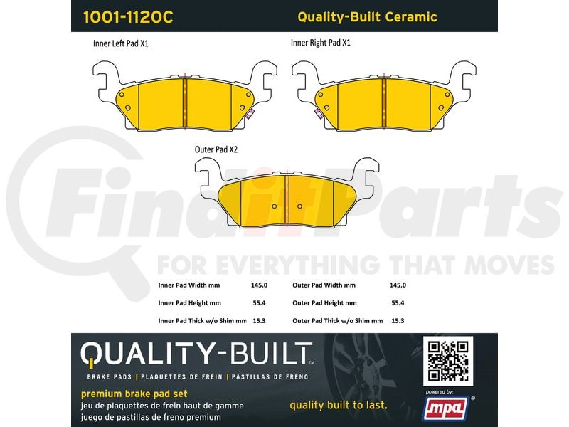 MPA Electrical 1001-1120C - Quality-Built Disc Brake Pad, Premium, Ceramic, with Hardware
