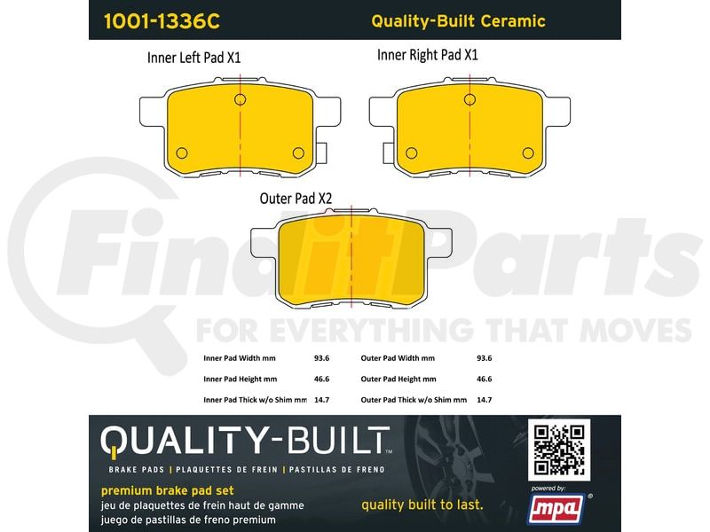 MPA Electrical 1001-1336C - Quality-Built Disc Brake Pad, Premium, Ceramic, with Hardware
