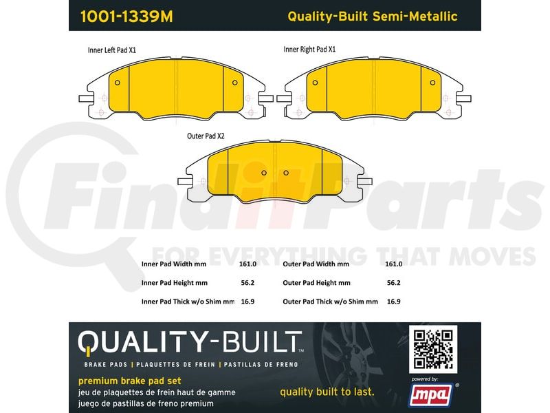 MPA Electrical 1001-1339M - Quality-Built Premium Semi-Metallic Brake Pads w/ Hardware
