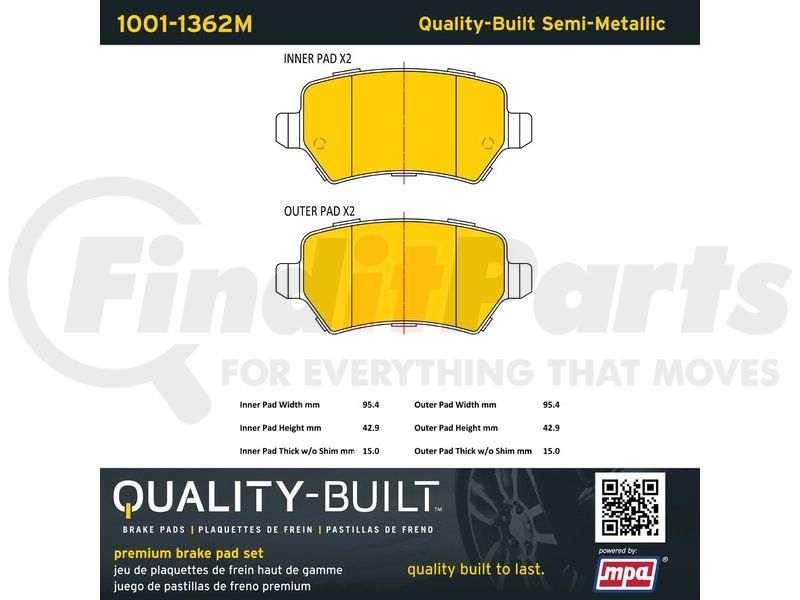 MPA Electrical 1001-1362M - Quality-Built Premium Semi-Metallic Brake Pads w/ Hardware
