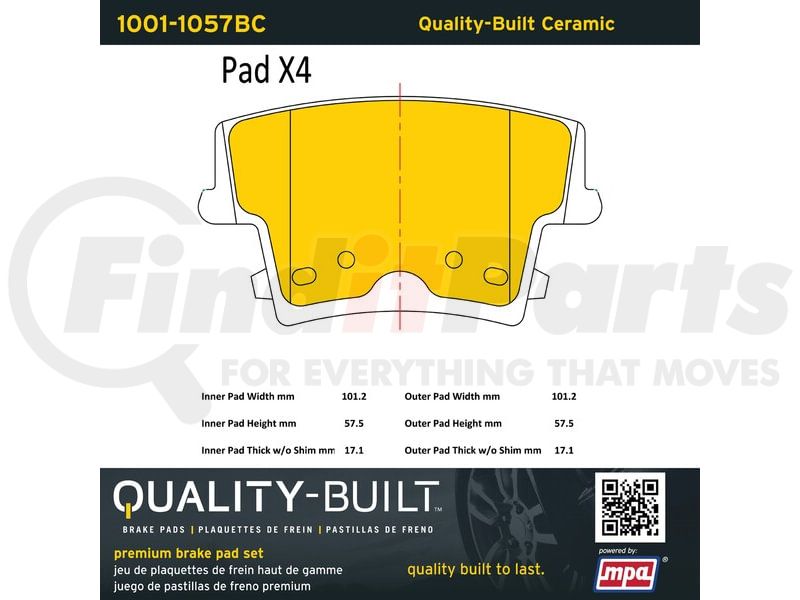 MPA Electrical 1001-1057BC - Quality-Built Disc Brake Pad, Premium, Ceramic, with Hardware