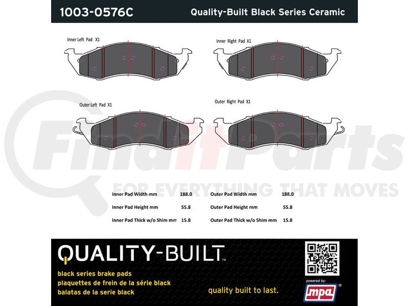 MPA Electrical 1003-0576C - Quality-Built Disc Brake Pad Set - Black Series, Ceramic, with Hardware