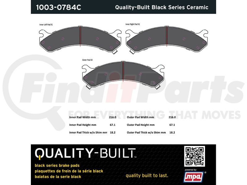 MPA Electrical 1003-0784C - Quality-Built Disc Brake Pad Set - Black Series, Ceramic, with Hardware