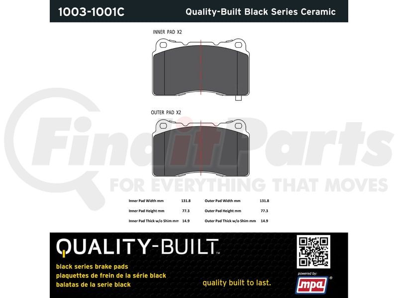 MPA Electrical 1003-1001C - Quality-Built Disc Brake Pad Set - Black Series, Ceramic