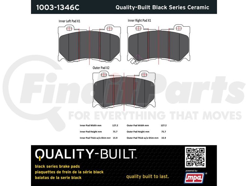 MPA Electrical 1003-1346C - Quality-Built Disc Brake Pad Set - Black Series, Ceramic, with Hardware