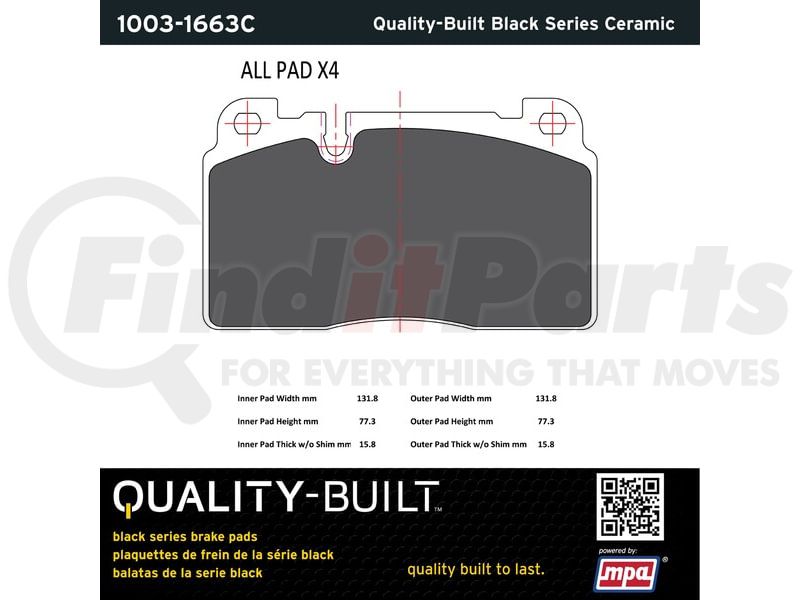 MPA Electrical 1003-1663C - Quality-Built Disc Brake Pad Set - Black Series, Ceramic, with Hardware