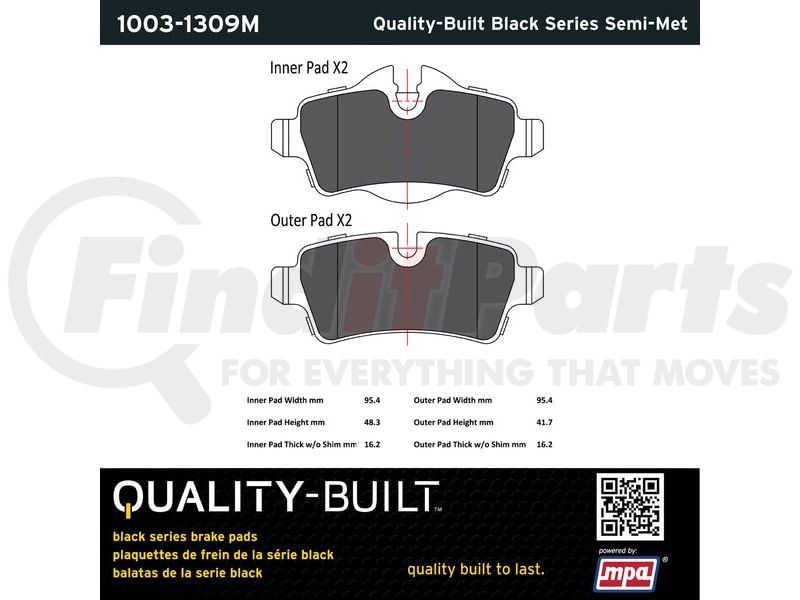 MPA Electrical 1003-1309M - Quality-Built Black Series Semi-Metallic Brake Pads w/ Hardware