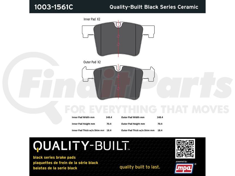 MPA Electrical 1003-1561C - Quality-Built Disc Brake Pad Set - Black Series, Ceramic, with Hardware