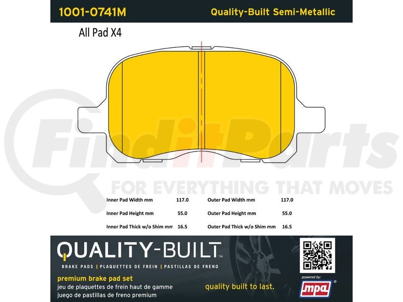 MPA Electrical 1001-0741M - Quality-Built Premium Disc Brake Pad Set - Semi-Metallic, with Hardware