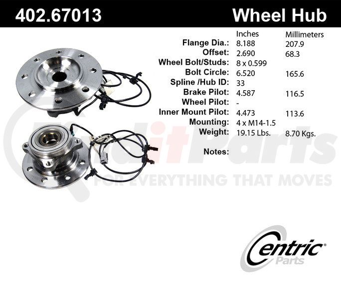 Centric 402.67013 - Centric Premium Hub and Bearing Assembly; With Integral ABS